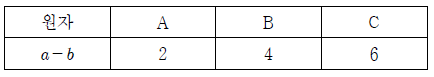표는 3주기 바닥 상태 원자 A ~ C에 대해 원자가 전자 수(a)와 홀전자 수(b)의 차(a-b)를 나타낸 것이다. A ~ C는 원자번호가 연속이다.