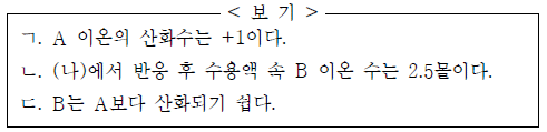 이에 대한 옳은 설명만을 <보기>에서 있는 대로 고른 것은? (단, A, B는 임의의 원소 기호이고, A, B, Al은 물과 반응하지 않으며, 음이온은 반응에 참여하지 않는다.) [3점]