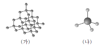 그림은 다이아몬드(C)와 메테인(CH4)의 구조를 모형으로 나타낸 것이다.