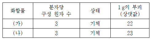 표는 t℃, 1기압에서 X, Y 두 원소로 이루어진 화합물 (가), (나)에 대한 자료이다. 원자량은 X가 Y보다 크다.