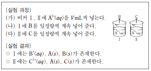 [과목 구분 없음] 다음은 금속 A~C의 산화 환원 반응 실험이다.