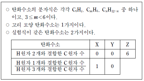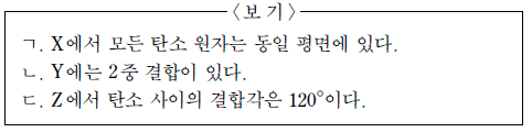 [과목 구분 없음] 다음은 분자식이 서로 다른 탄화수소 X~Z 에 대한 자료이다.