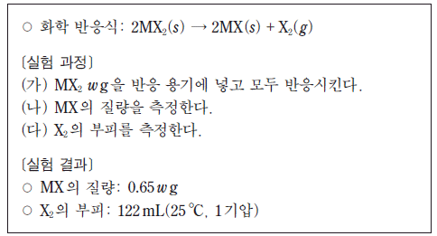M의 원자량은? (단, 25℃, 1기압에서 기체 1몰의 부피는 24.4L이다.) [3점]