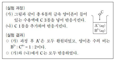 다음은 금속 A~C의 산화 환원 반응 실험이다.