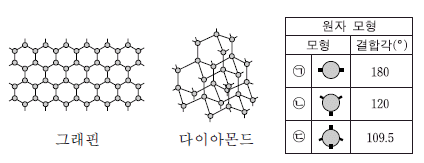 다음은 그래핀과 다이아몬드의 구조를, 표는 원자 모형을 나타낸 것이다.