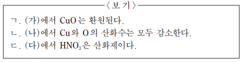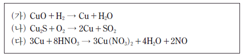 다음은 Cu와 관련된 3가지 반응의 화학 반응식이다.