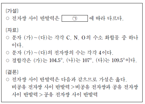 다음은 전자쌍 사이에 작용하는 반발력을 비교하기 위해 학생 A가 수행한 탐구이다.