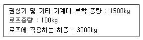 [승강기 설계] 다음의 조건에서 기계대에 걸리는 하중은 몇 kg 인가?