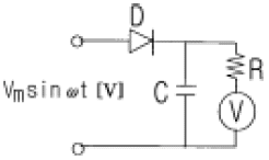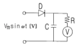 전압의 실효값이 100V, 주파수 60Hz인 교류를 직류용 가동 코일형 계기를 사용하여 그림과 같이 측정하였다. 전압계 의 눈금은 몇 V 인가? (단, 전압계의 내부저항 R 의 값은 충분히 크다고 한다.)