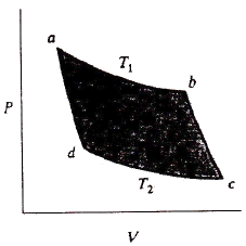 그림과 같은 카르노 열기관의 사이클 P-V 선도에서 d→a 과정이 나타내는 것은?