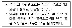 다음 설명과 가장 관계되는 열역학적 법칙은?