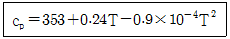 어떤 기체의 정압비열(cp)이 다음 식으로 표현될 때 32℃와 800℃ 사이에서 이 기체의 평균정압비열(