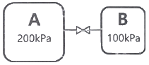 단열 밀폐되어 있는 탱크 A, B가 밸브로 연결되어 있다. 두 탱크에 들어있는 공기(이상기체)의 질량은 같고, A탱크의 체적은 B탱크 체적의 2배, A탱크의 압력은 200kPa, B탱크의 압력은 100kPa이다. 밸브를 열어서 평형이 이루어진 후 최종 압력은 약 몇 kPa인가?