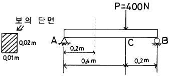 [재료역학] 그림과 같은 단면을 가진 단순보 AB에 하중 P가 작용할때 A단에서 0.2m 떨어진 곳의 굽힘응력은 몇 MPa 인가?