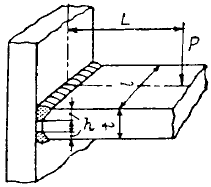 [용접구조설계] 그림과 같이 굽힘과 전단을 받는 불용착부가 있는 T형의 이음에서 거리 L = 120 mm, 하중 P = 5000㎏f이 작용되고 있을 때 용접부에 생기는 최대굽힘응력은 몇 ㎏f/㎜2인가? ( 단, 용접길이 ℓ =240 mm, 판두께 t=36 mm, 홈깊이 h=12mm 이다.)