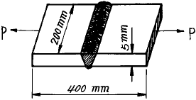 [용접구조설계] 그림과 같은 V형 맞대기 용접에서 인장력 P = 3000㎏f의 하중이 작용하였다면 인장응력(σ)은 얼마인가?