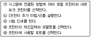 다음 중 한글 Windows XP에서 새로운 프린터를 추가하는 과정을 순서대로 올바르게 나열한 것은?