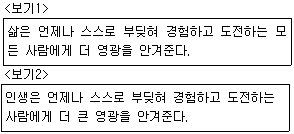 다음 중 아래의 <보기1> 문장을 <보기2> 문장으로 수정하기 위하여 필요한 교정부호들로 옳은 것은?