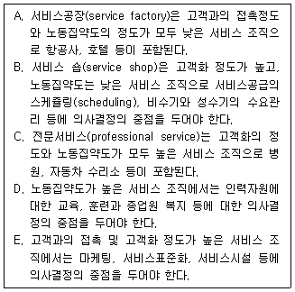 [유통마케팅] 서비스 매트릭스에 대한 설명 중 옳은 항목만으로 구성된 것은?