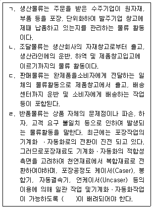 [물류경영] 물류 활동에 대한 설명들이다. 이 중 옳은 것으로만 묶인 것은?