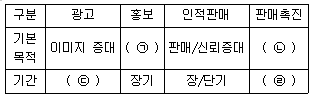 - ㉠ 관계형성 - ㉡ 매출증대 - ㉢ 장기 - ㉣ 장기