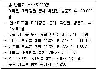 아래 글상자에서 제시하는 내용을 토대로 가장 효과적인 전환율(CVR)을 보인 마케팅 채널로 옳은 것은?
