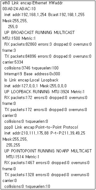 [운영체제] 다음은 어떤 시스템의 ifconfig 내용을 본 결과이다. 해설이 틀린 것은?