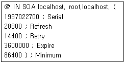 다음은 DNS Zone 파일의 SOA 레코드내용이다. SOA 레코드의 내용을 보면 5 개의 숫자값을 갖는다. 그 중 두번째 값인 Refresh 값의 역할은 무엇인가?