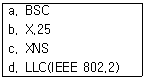 - "a, d": 비트 방식 프로토콜인 HDLC와 SDLC가 하위 계층에 해당하며, 둘 다 트랜스포트 계층 이하에 위치한다.