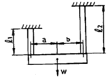 [재료역학] 그림과 같이 재료와 단면적이 같고 길이가 서로 다른 강봉에 지지되어 있는 보에 하중을 가해 수평으로 유지하기 위한 비 a/b 는?