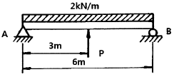 [재료역학] 그림과 같은 단순지지보에서 2 kN/m의 분포하중이 작용할 경우 중앙의 처짐이 0이 되도록 하기 위한 힘 P의 크기는 몇 kN인가?