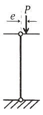 [재료역학] 양단이 회전지지로 된 장주에서 거리 e 만큼 편심된 곳에 축방향 하중 P가 작용할 때 이 기둥에서 발생하는 최대 압축응력(σmax)은? (단, A는 기둥 단면적, 2c는 두께, r은 단면의 회전반경, E는 세로탄성계수이다.)