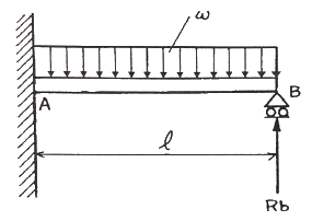 [재료역학] 그림과 같은 부정정보가 등분포 하중(ω)을 받고 있을 때 B점의 반력 Rb는?