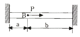 이 막대는 고정점 A와 하중 작용점 B로 이루어진 양단이 고정된 막대이므로, B점에서의 변위 발생량은 다음과 같이 구할 수 있다.