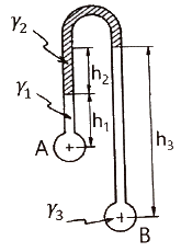 [기계유체역학] 그림과 같은 시차액주계에서 A, B점의 압력차 PA - PB는? (단, γ1, γ2, γ3는 각 액체의 비중량이다.)