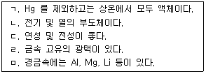 보기는 금속의 특성을 설명한 것이다. 옳은 것으로만 모두 나열한 것은?