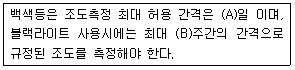 항공우주용 자기탐상 검사방법((KS W 4041)의 조명 장치 및 조도에 대한 보기 내용 중 ( ) 안에 알맞은 수치는?