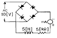 [전기기기] 그림에서 밀리암페어계의 지시[mA]를 구하면 얼마인가? (단, 밀리암페어계는 가동 코일형이고, 정류기의 저항은 무시한다.)