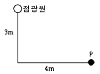 [전기응용] 100[cd]의 점광원으로부터 점 P의 평면상 조도[lx]는?