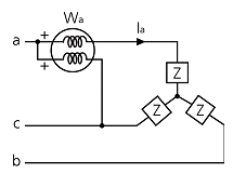 [회로이론] 그림은 상순이 a-b-c인 3상 대칭회로이다. 선간전압이 220V이고 부하 한상의 임피던스가 100∠60°Ω일 때 전력계 Wa의 지시값[W]은?