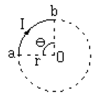 [전기자기학] 그림과 같이 반지름 r[m]인 원의 임의의 2점 a,b(각 θ) 사이에 전류 I[A]가 흐른다. 원의 중심 0의 자계의 세기는 몇 [A/m]인가?