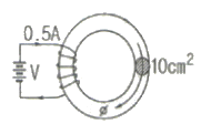 그림과 같이 비투자율 μt=1000, 단면적 10cm2, 길이 2m인 환상철심이 있을 때, 이 철심에 코일을 2000회 감아 0.5A의 전류를 흘릴 때의 철심내 자속은 몇 [Wb] 인가?