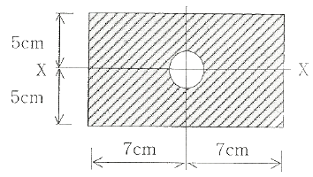 그림과 같은 단면에서 지름 3cm 원을 떼어 버린다면 도심축 X축에 대한 단면 2차 모멘트는 약 몇 [cm4]인가?
