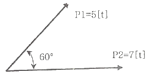그림과 같은 두 힘의 합력 R[t]은 약 얼마인가?