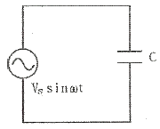 그림과 같은 콘덴서 C[F]에 교번전압 Vssinwt[V]를 가했을 때 콘덴서 내의 변위전류[A]는?