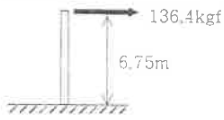 단독 지지주에서 지지정이 6.75m 인 전차선에 136.4kgf 의 수평집중하층이 작용하는 경우, 지면과의 경계정에서 전단력[kgf]은?