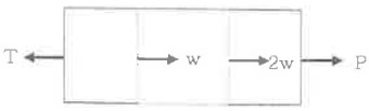 그림과 같이 균일 단면봉이 축하중을 받고 평형을 이룰때. T=2P가 되려면 W는 얼마가 되어야 하는가?