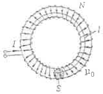 그림과 같이 균일하게 도선을 강은 권수 N, 단면적 S(m2), 평균길이 l(m)인 공심의 환상솔레노이드에 I(A)의 전류를 흘렸을 때 자기인덕턴스 L(H)의 값은?