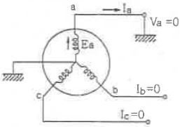 그림과 같은 3상 무부하 교류발전기에서 a상이 지략된 경우 지략전류는 어떻게 나타내는가?