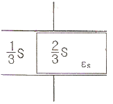 정전용량이 Co(㎌)인 평행판 공기콘덴서 판의 면적 2/3S에 비유전율 εs인 에보나이트판을 삽입하면 콘덴서의 정전용량은 몇 ㎌인가?
